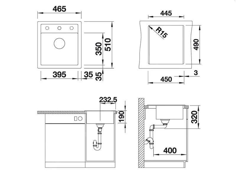 Lavello da cucina Dalago 45, con eccentrico (pulsante di azionamento dello scarico)