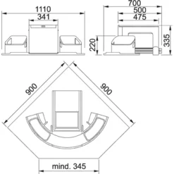 - possibilità di incasso in armadietti inferiori con sportelli tamburati con larghezza del telaio di 900 mm