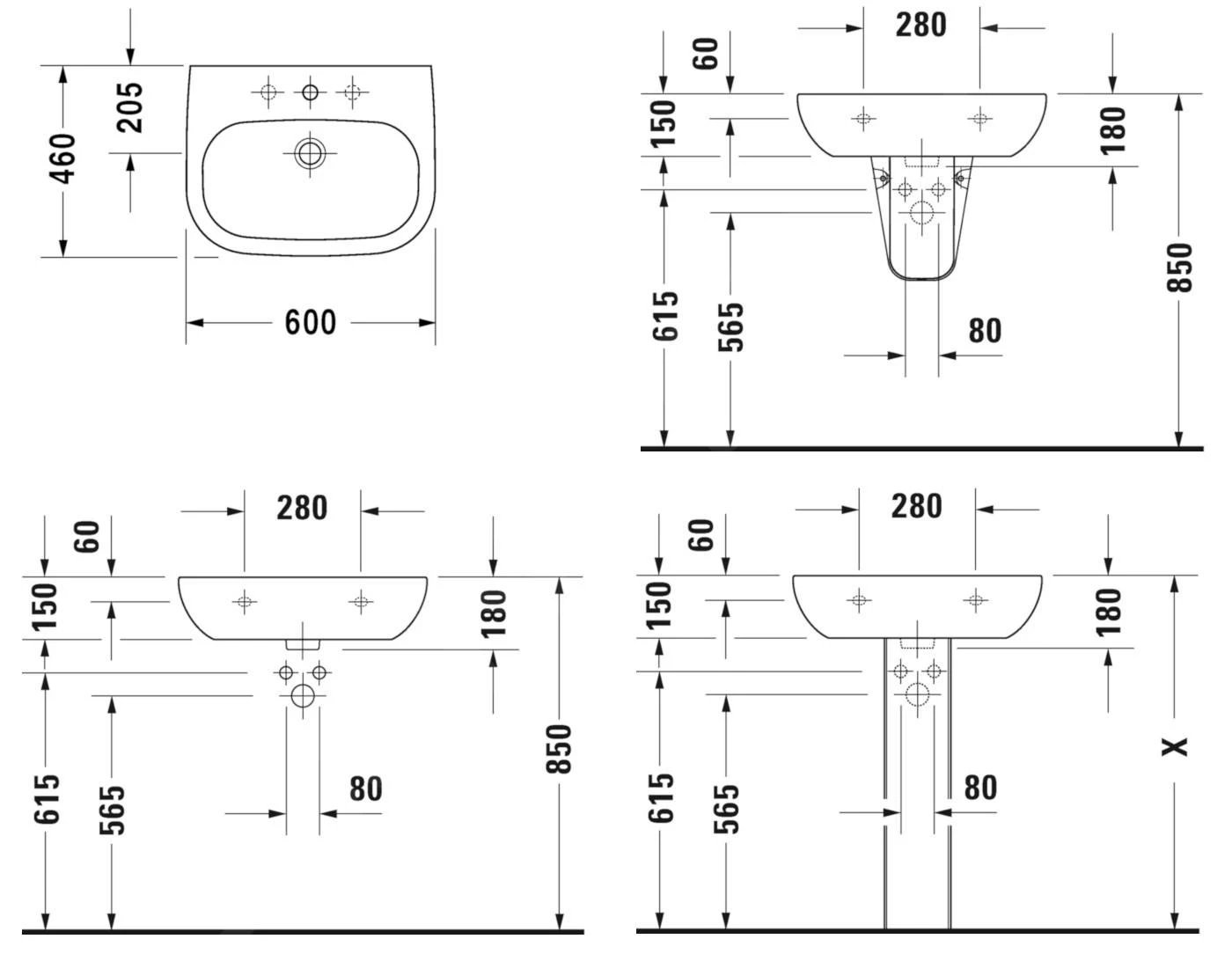- 1 foro per il miscelatore da lavabo