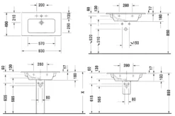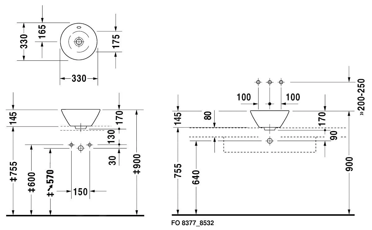 Il montaggio del lavabo 040833 con un diametro di 330 mm è possibile utilizzando una colla speciale.
