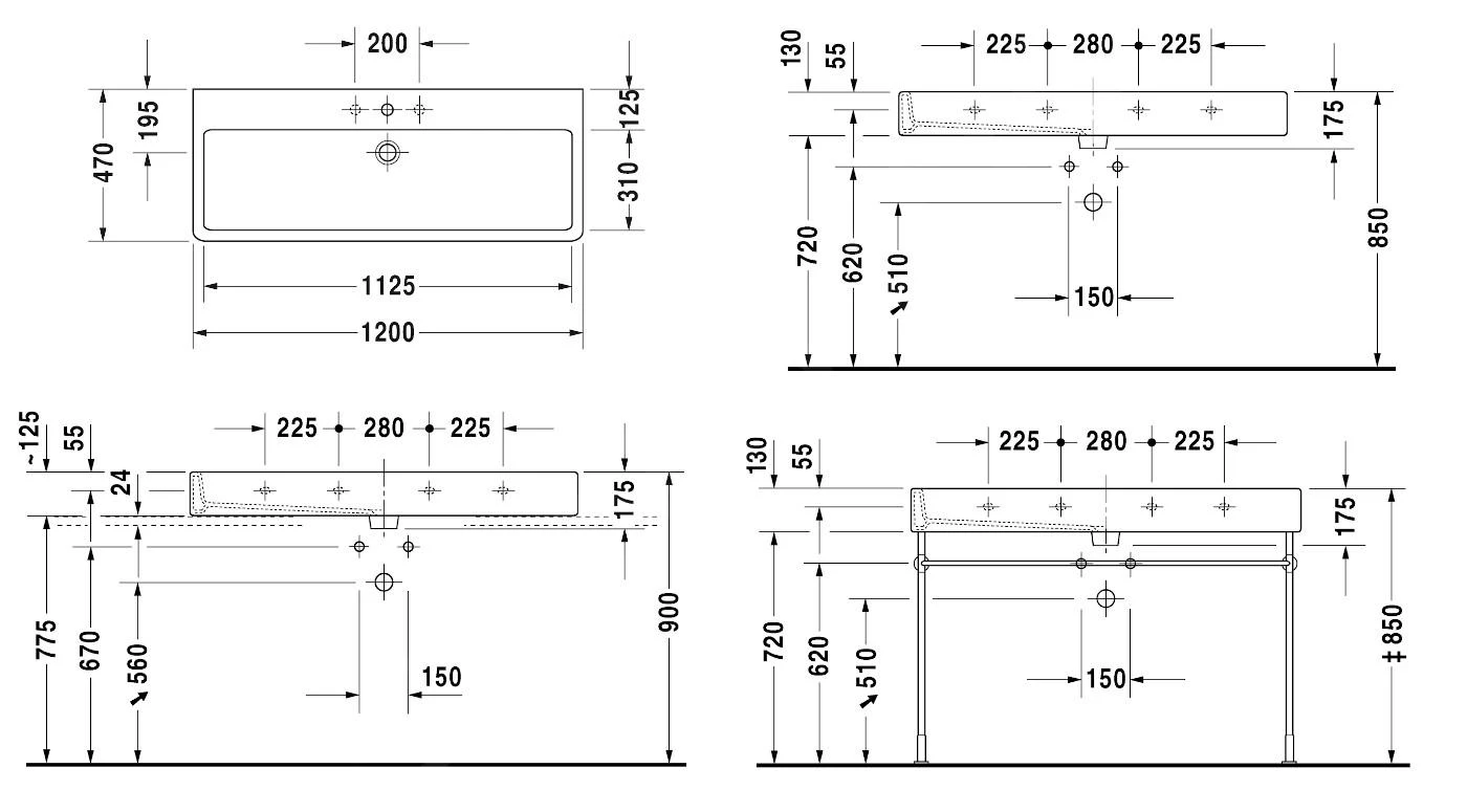 Per lavabi di lunghezza pari o superiore a 1000 mm sono necessari 2 set di fissaggio (non incluso nella fornitura).