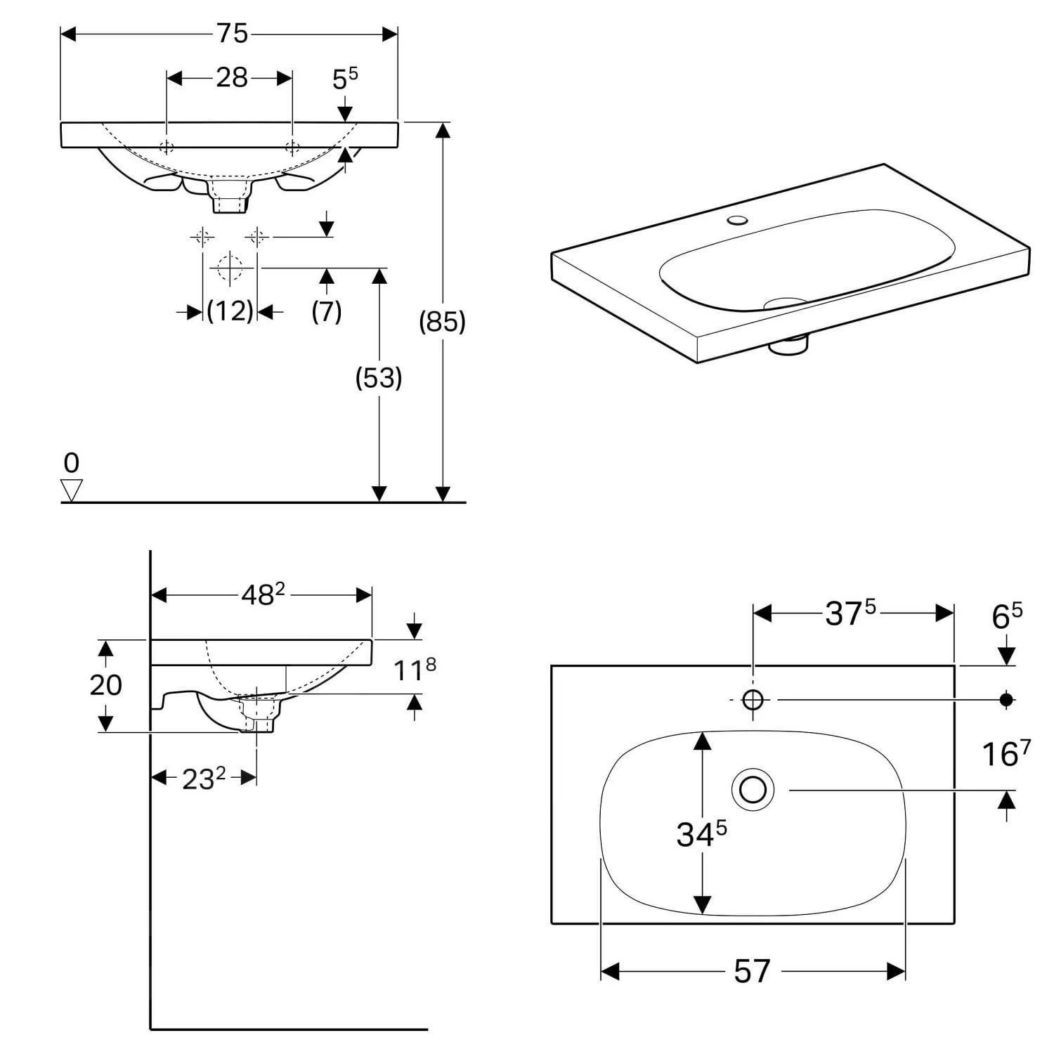 Lavabo con troppopieno nascosto e copertura della valvola di scarico