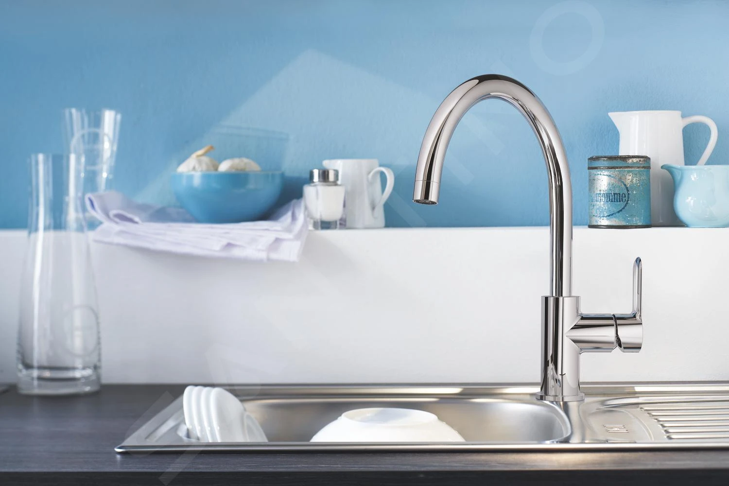 Il miscelatore per lavello GROHE Bauloop dona un tocco di eleganza alla vostra cucina e si integra perfettamente con qualsiasi lavello moderno.