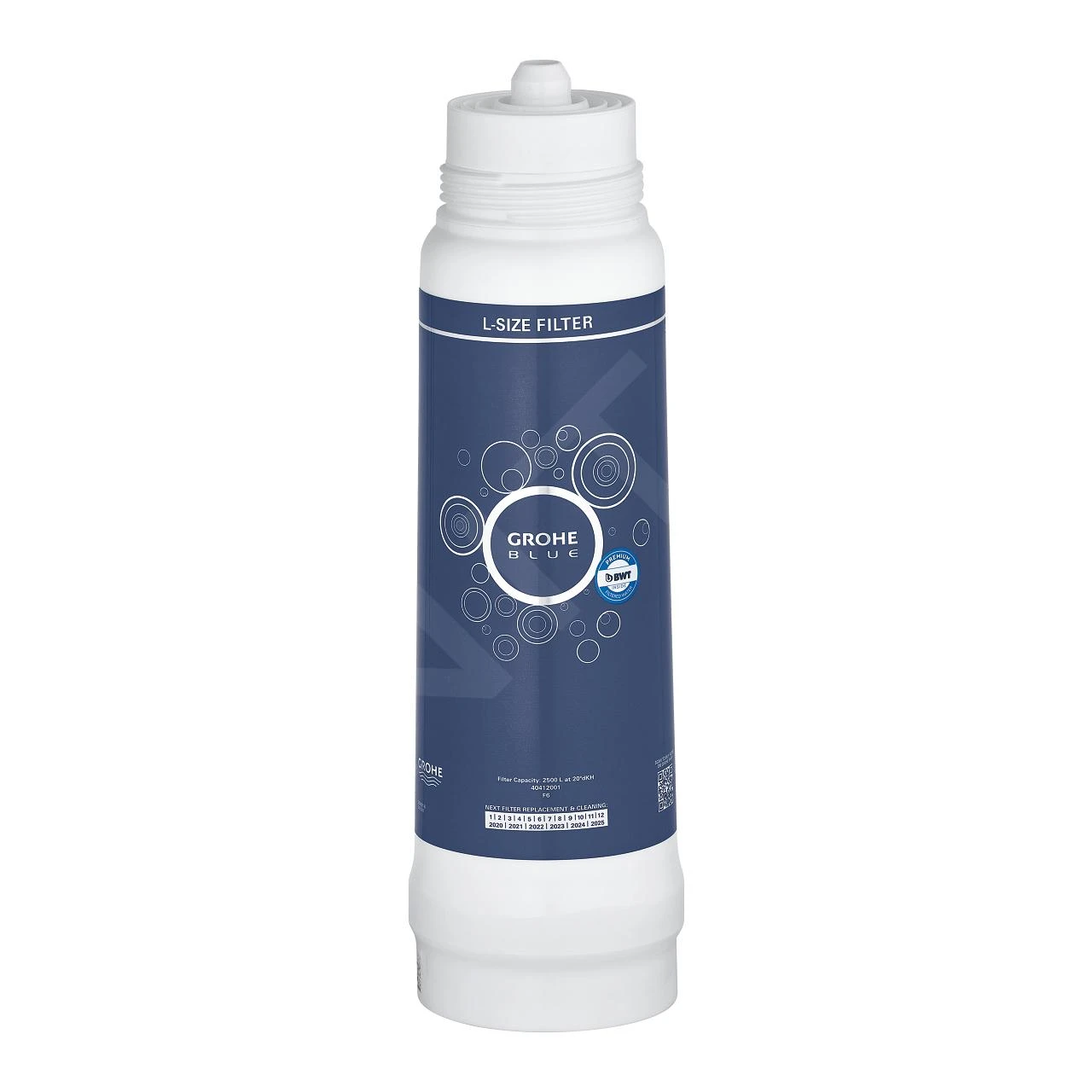 Per mantenere l’acqua filtrata sempre disponibile, il filtro GROHE Blue BWT a 5 fasi, taglia L, é disponibile anche con una capacitá di 2.600 litri a 15° dKH, che potrete facilmente sostituire con un filtro che si é preso curadella qualitá della vostra acqua fino ad ora.