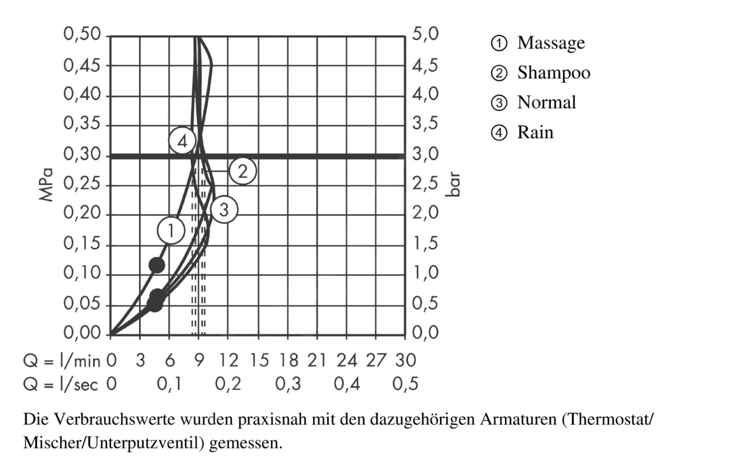 - quantità di portata del getto Rain (a 0,3 MPa): 9 l/min