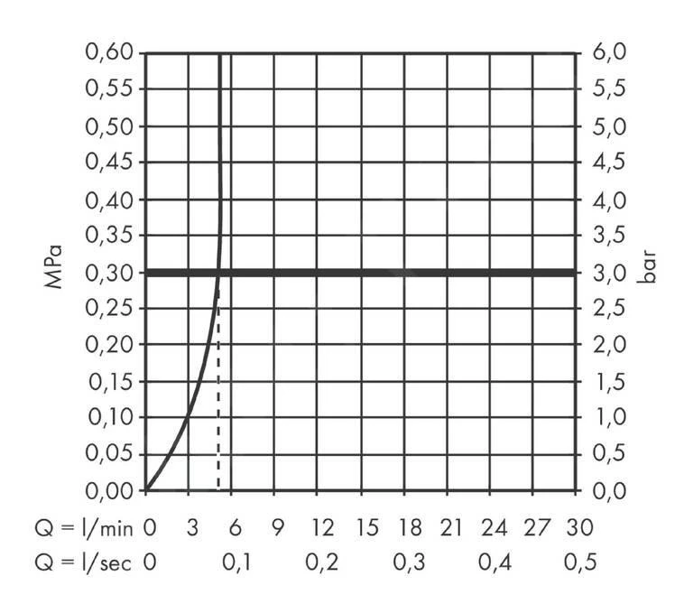 - portata massima: 5 l/min (pressione 3 bar)