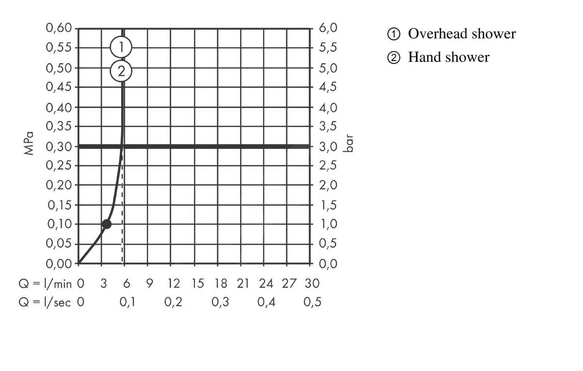 - EcoSmart, portata massima a 3 bar: 5,4 l/min