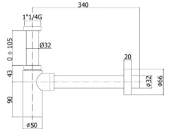 Paffoni Ringo West – Sifone Da Lavabo 1 1/4, Odpad 32 Mm, Nero Opaco ZACC240NO