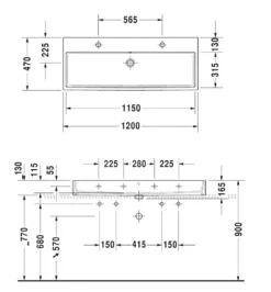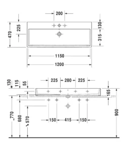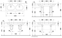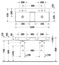 Duravit Vero – Lavabo Doppio 1200×470 Mm, Con 2 Fori Per Miscelatore, Bianco Alpino 0454120024