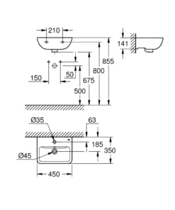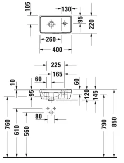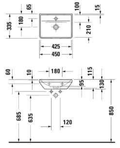 Duravit Vero – Lavamani Da Mobile 450×350 Mm, Con 1 Foro Per Miscelatore, Bianco Alpino 0704450027
