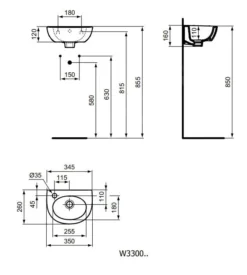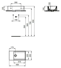 Ideal Standard Strada II – Lavamani 450×270 Mm, Foro Per Rubinetto A Sinistra, Bianco T299501