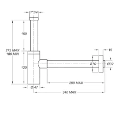 Sapho Sifoni – Sifone Per Lavabo 1 1/4, Scarico 32 Mm, Rotondo, Nero Opaco SI515
