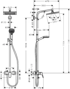 Hansgrohe Crometta – Set Doccia Termostatico E 240 Showerpipe, EcoSmart 9 L/min, Cromato 27281000