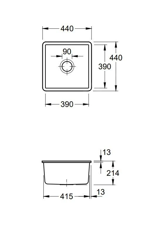 - dimensioni di ingombro del lavello: 440 x 440 mm